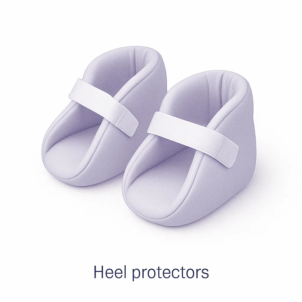 Cushioned support devices that offload pressure from heels and prevent skin breakdown.